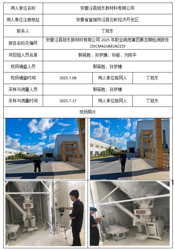 安徽泾县旭东新材料科技有限公司2025年职业病危害因素定期检测报告