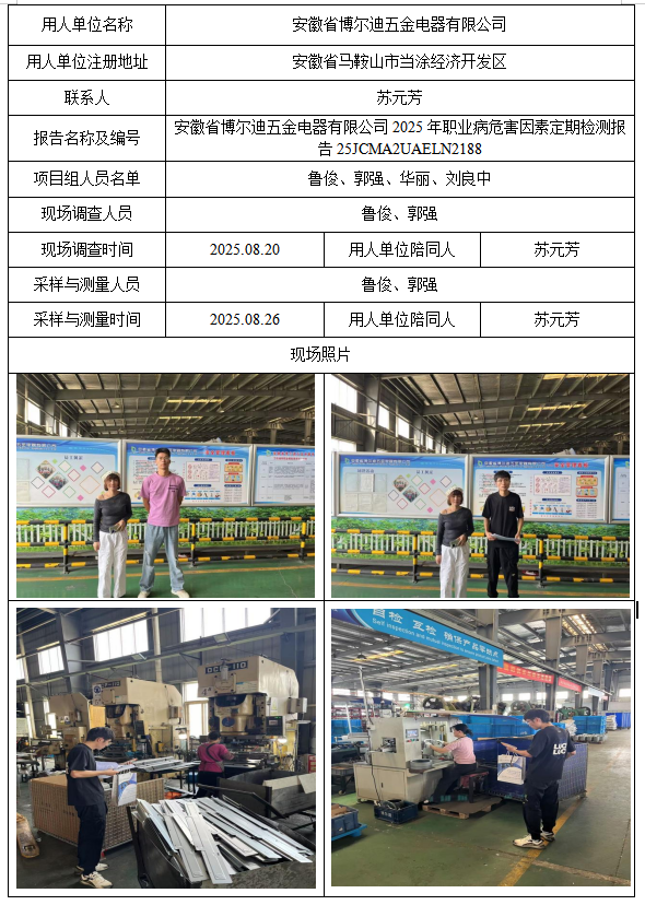 安徽省博尔迪五金电器有限公司2025年职业病危害因素定期检测报告