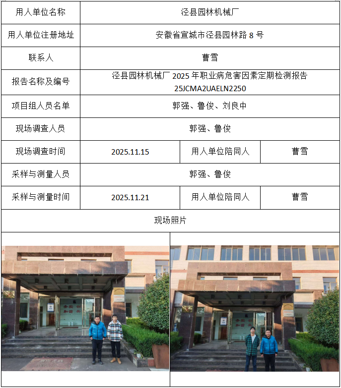 泾县园林机械厂2025年职业病危害因素定期检测报告