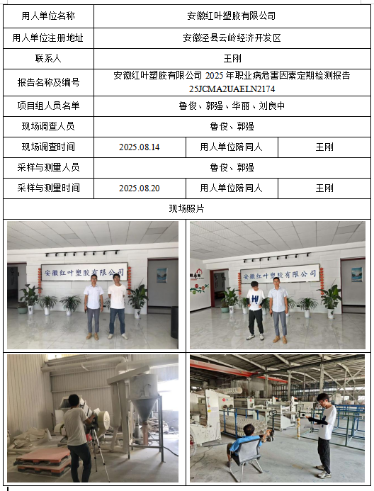 安徽红叶塑胶有限公司2025年职业病危害因素定期检测报告