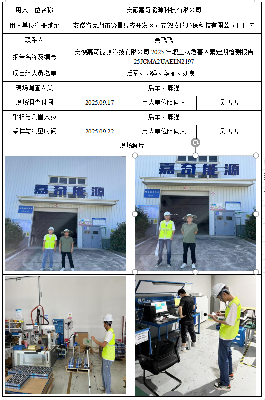 安徽嘉奇能源科技有限公司2025年职业病危害因素定期检测报告