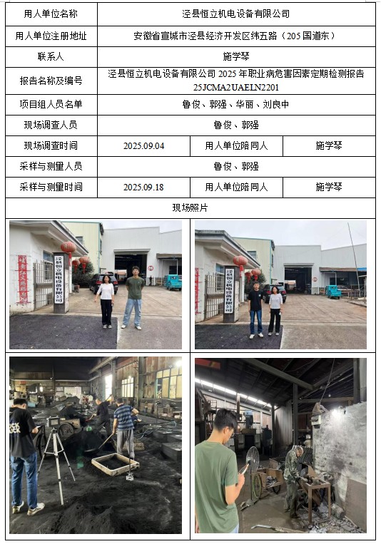 泾县恒立机电设备有限公司2025年职业病危害因素定期检测报告