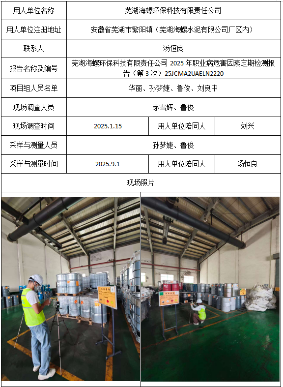 芜湖海螺环保科技有限责任公司2025年职业病危害因素定期检测报告(第3次)