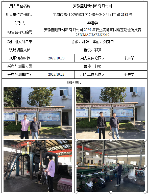 安徽鑫旭新材料有限公司2025年职业病危害因素定期检测报告