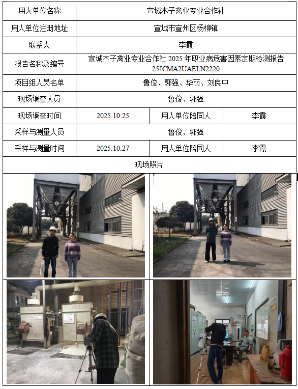 宣城木子禽业专业合作社2025年职业病危害因素定期检测报告