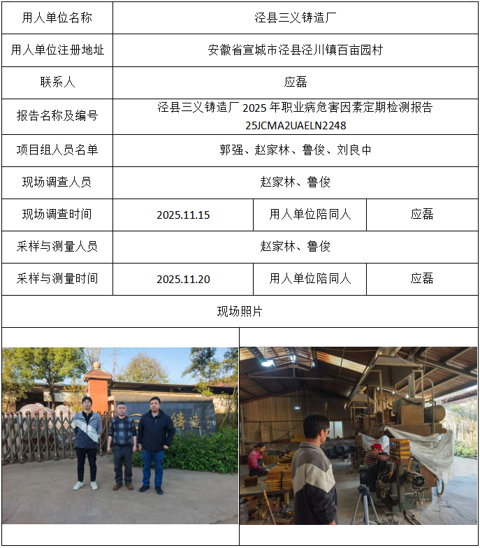 泾县三义铸造厂2025年职业病危害因素定期检测报告