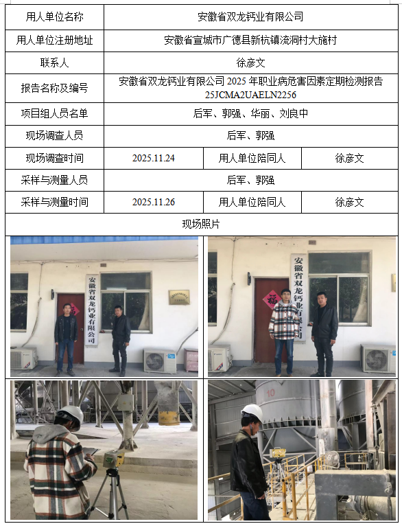 安徽省双龙钙业有限公司2025年职业病危害因素定期检测报告