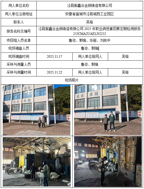 泾县合金钢铸造有限公司2025年职业病危害因素定期检测报告